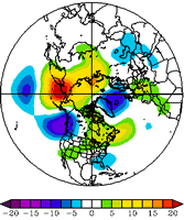 500mb geopotential height anomalies the last 30-days showing the anomalous trough over the Gulf of Alaska that has been producing the rainy weather.