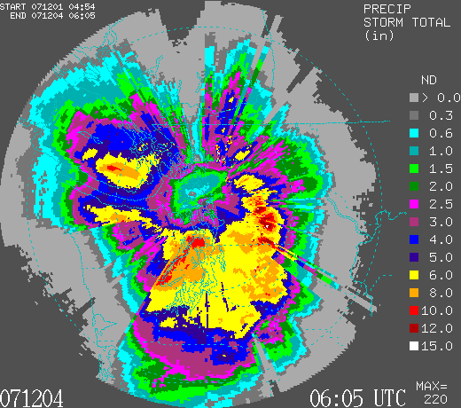 Western Washington radar estimated total storm precipitation for the period 05 UTC December 1, 2007 through 06 UTC December 4, 2007.