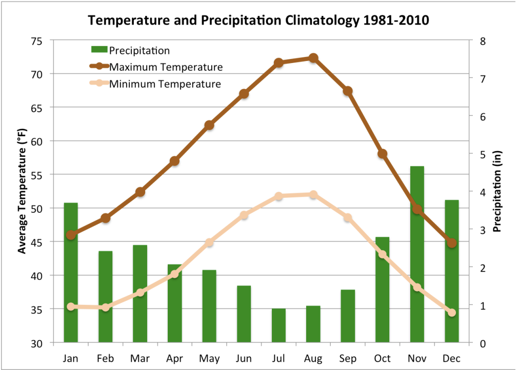 In summary, the smallest climate division in WA state – the NE Olympic-San Juan division – also happens to have the warmest average winter temperatures in the state, is the driest division in western WA, and has relatively mild summer high temperatures. This is all thanks to the Olympic Mountain rainshadow and moderation by the surrounding waters. Please feel free to provide feedback on our Climate Division Series. Is there any special topic you’d like to see in subsequent series? Email/tweet/Facebook us (climate@atmos.washington.edu; @WAStateClimate).