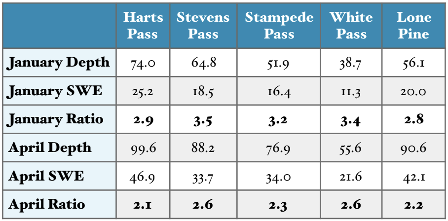 Snow Depth versus Snow Water Equivalent in the Cascades of Washington State