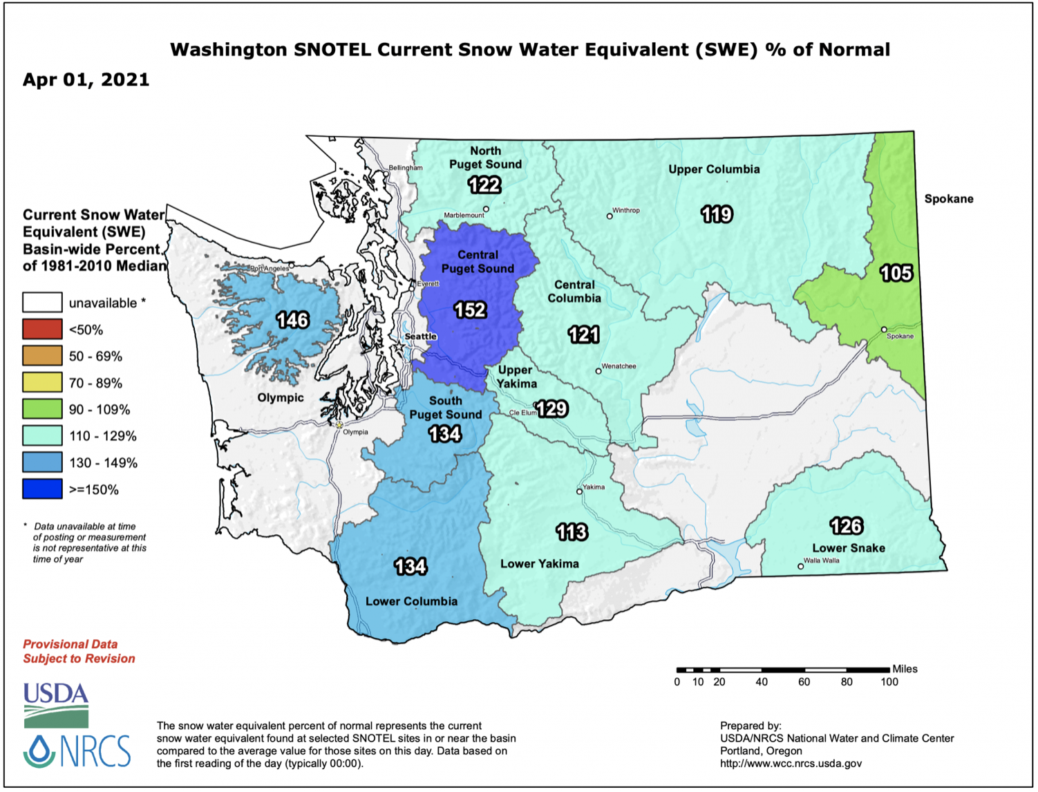 In summary, our wet season had near-normal temperatures and precipitation, averaged statewide. There was variability though; notably eastern WA had above normal temperatures and the Lower Columbia Basin was both warm and dry relative to normal. The CPC seasonal forecasts for December-February and January-March were right in calling for wetter than normal conditions, on average, though the below normal temperatures did not come into fruition until February, and for the season as a whole, conditions were on the warm side. The dry conditions experienced this spring so far, were also not predicted by the CPC. Both the recent dryness and the Northwest River Forecast Center’s streamflow forecast indicate that conditions will need to be watched closely this spring and summer as some water supply issues may arise. In particular, there may be implications for dryland agriculture in the Lower Columbia Basin, where soil moisture is already low due to long-term dryness.