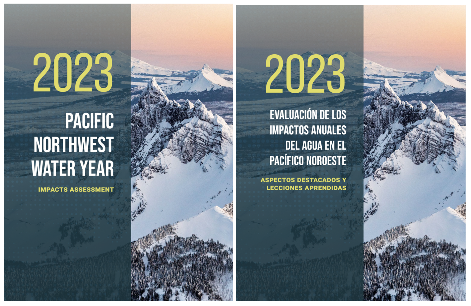 The fourth Pacific Northwest (PNW) Water Year Impacts Assessment, released in March, is a collaborative effort between water managers and scientists at the Office of the Washington State Climatologist, the Climate Impacts Group, Oregon Climate Service, Idaho Department of Water Resources, and the NOAA National Integrated Drought Information System (NIDIS). As reviewed in this newsletter before, the assessment is a culmination of several activities during the water year which include water year meetings and an end-of-the-water-year impacts survey. For the first time, an abbreviated version of the assessment is available in Spanish (Figure 1). The assessment summarizes the variations in temperature, precipitation and snowpack across Washington, Oregon, and Idaho during the 2023 water year (October 1, 2022-September 30, 2023) and reports on different sector-specific impacts that those caused. Here, we highlight just a few of the main findings.