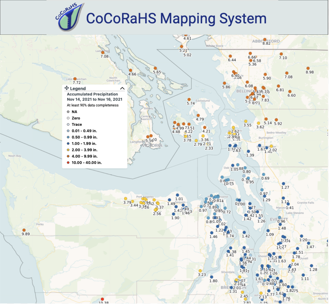 Total accumulation from November 14-November 16, 2021 in northwestern Washington.