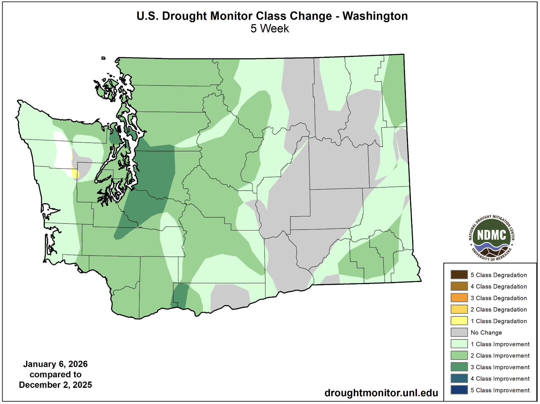 Change in U.S. Drought Monitor class from December 2, 2025 to January 6, 2026.