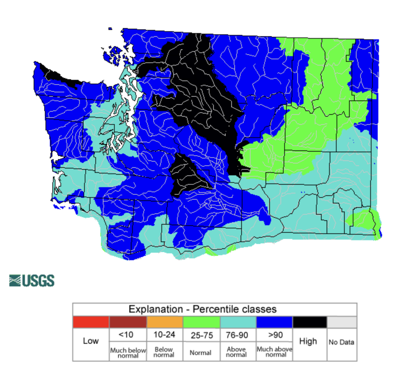 Wet conditions with numerous periods of flooding led to much above normal streamflow across most of the state. Areas in the northern and central Cascades and part of the Olympic Peninsula experienced record high streamflow for the month. Streamflow was near or slightly above normal in the Columbia Plateau where less precipitation fell throughout the month. High streamflows were primarily the result of a strong atmospheric river event from December 8-11 which brought very high snow levels and widespread mountain rains.