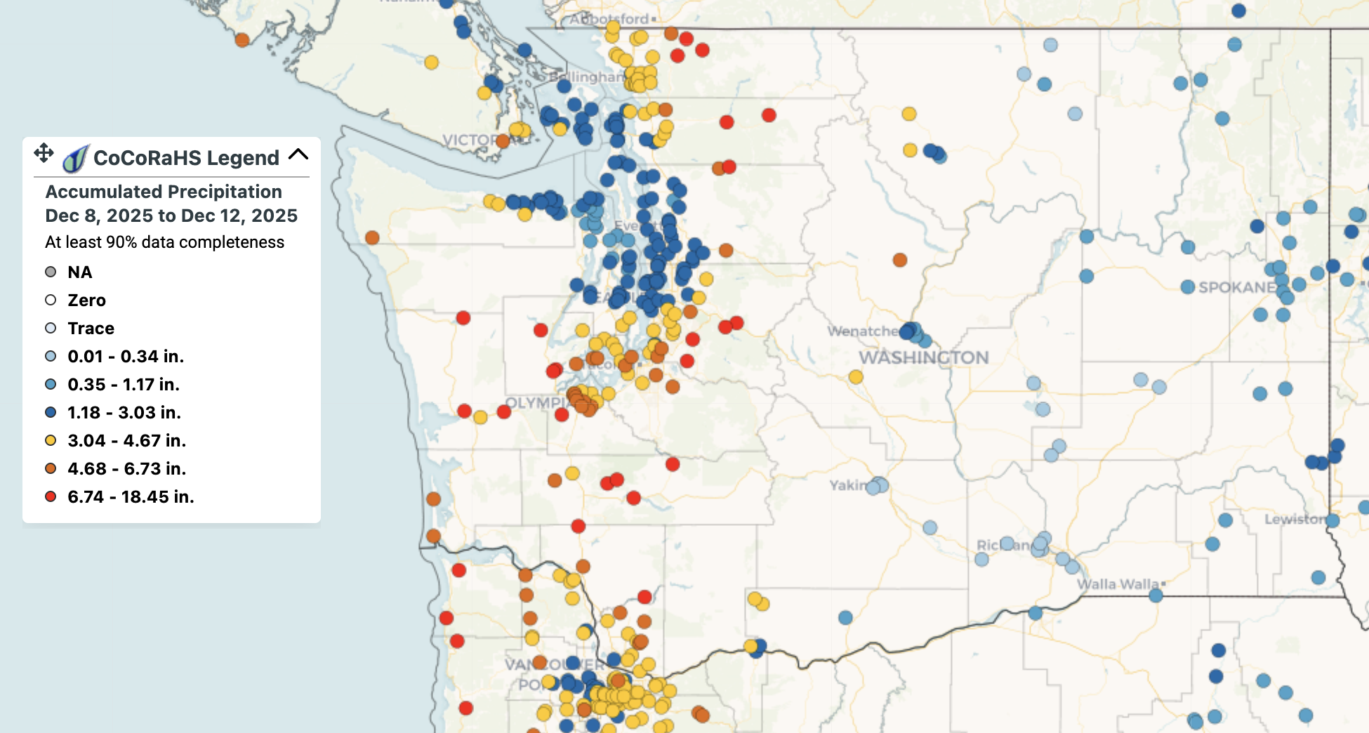 - A warm atmospheric river event from December 8-11 brought widespread flooding to both western Washington and the eastern slopes of the Cascades. Read more in this article and in this Month’s Climate Matters.