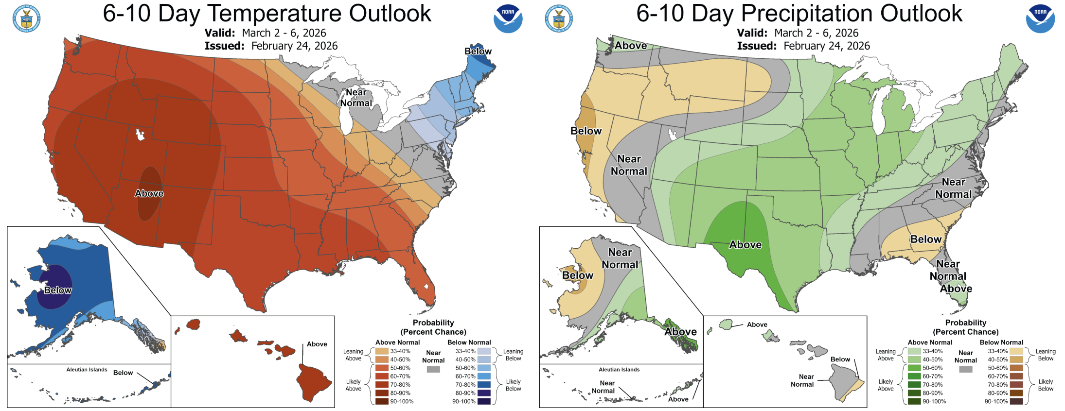 6-10 day outlook for temperatures (left) and precipitation (right).