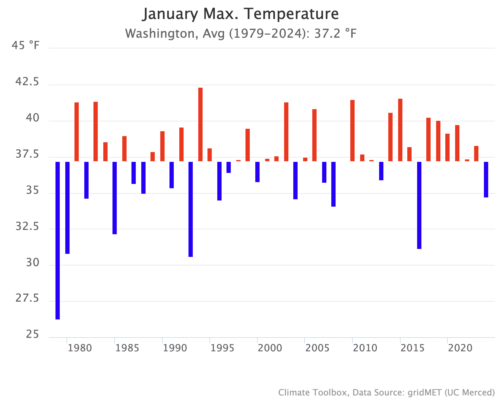 Plot monthly gridded climate data (gridMET) from 1979-present at 4 km spatial resolution.