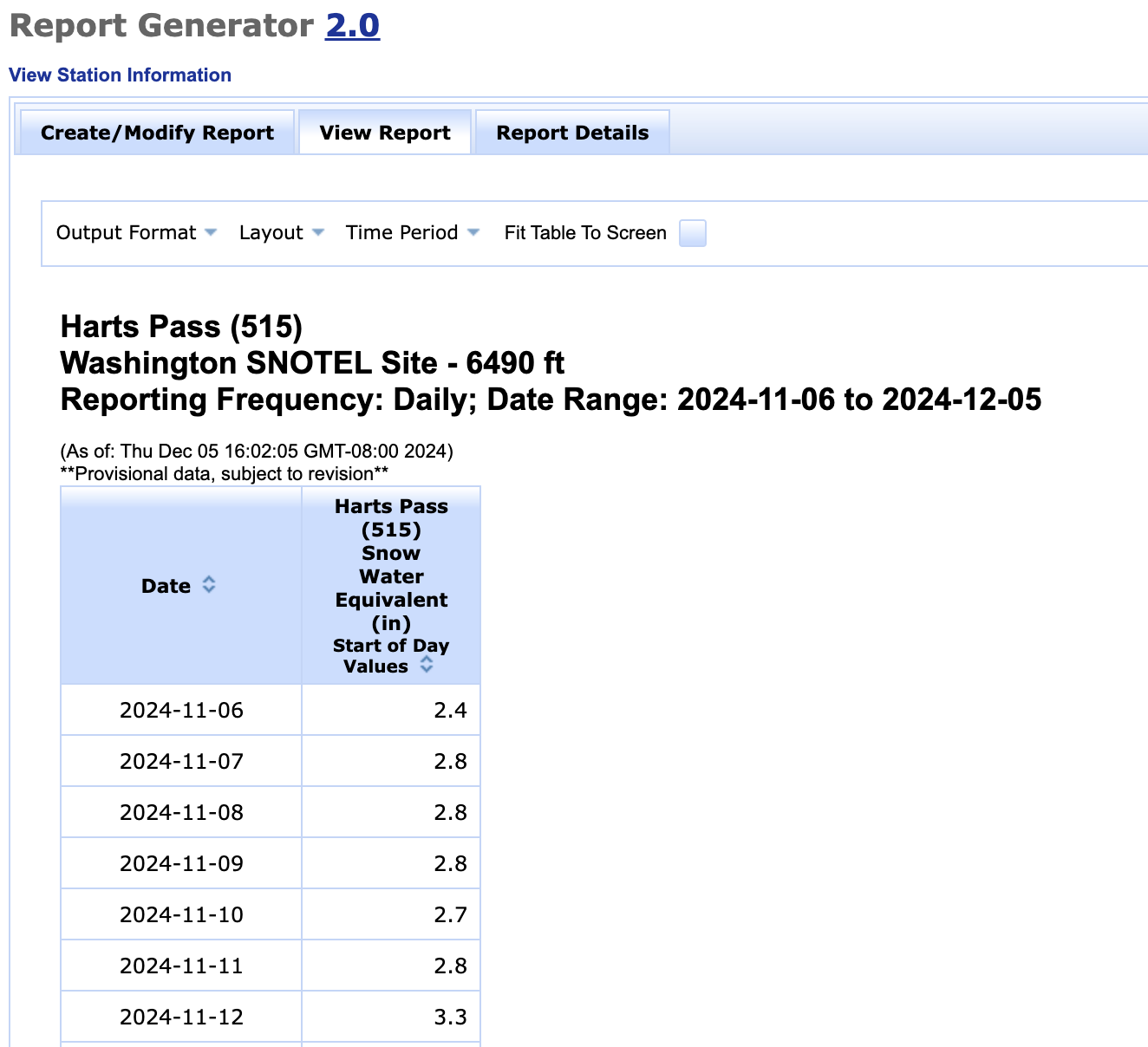 Description: View and plot observations from mountain SNOTEL and snow course stations, from the late 1800s–present, when available.